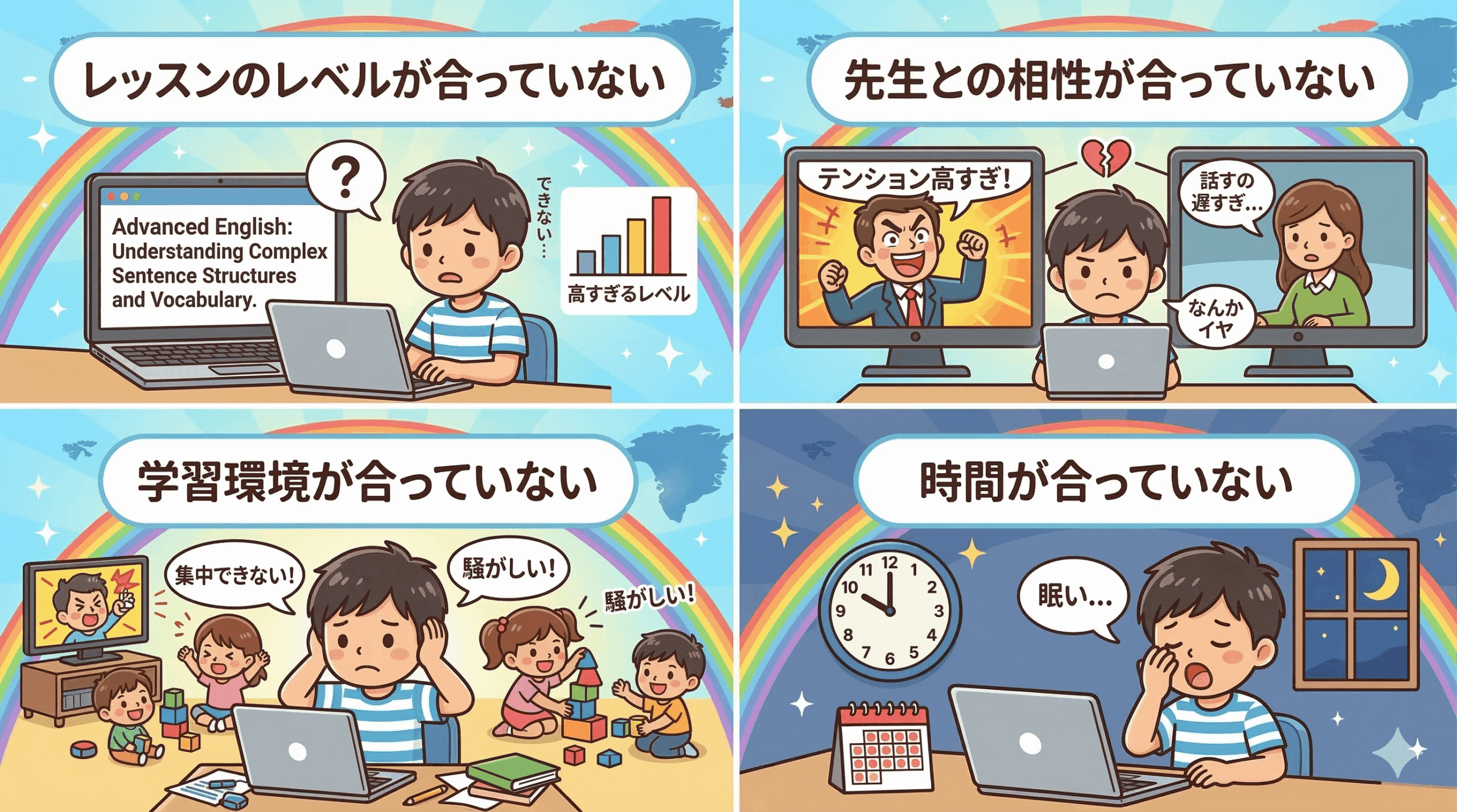 オンライン英会話が続かない理由・4つの「合っていない」