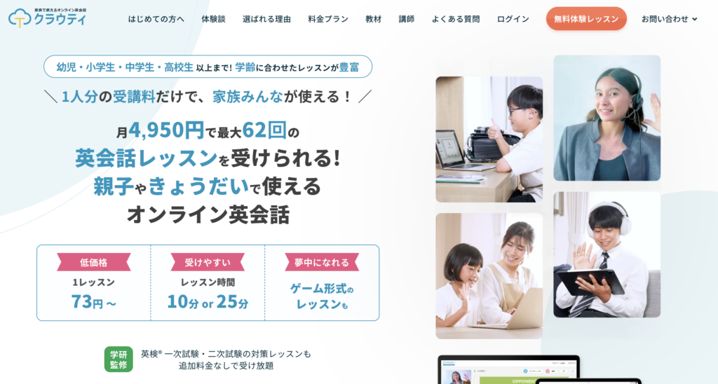 クラウティは、幼児、小学生、中学生、高校生以上まで幅広く対応。学齢に合わせたレッスンが豊富に揃っており、楽しく英会話レッスンをご受講いただけます。