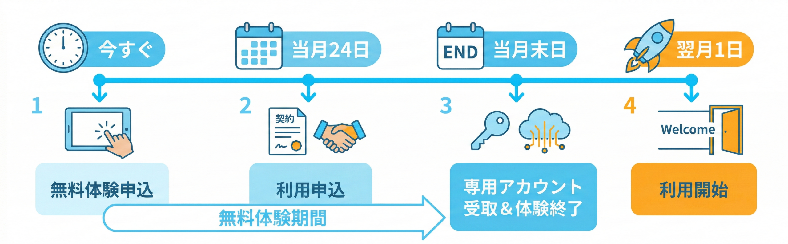 STEP3. 専用アカウントのお受け取り&無料体験終了(お申し込み月の月末)