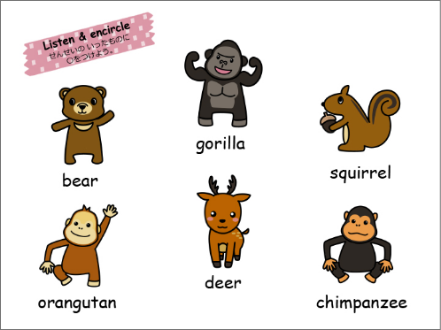教科書のような文字主体ではなく、イラストを豊富に使った絵本のようなテキストを使うので、音とイメージで英語を覚えていくことができます。