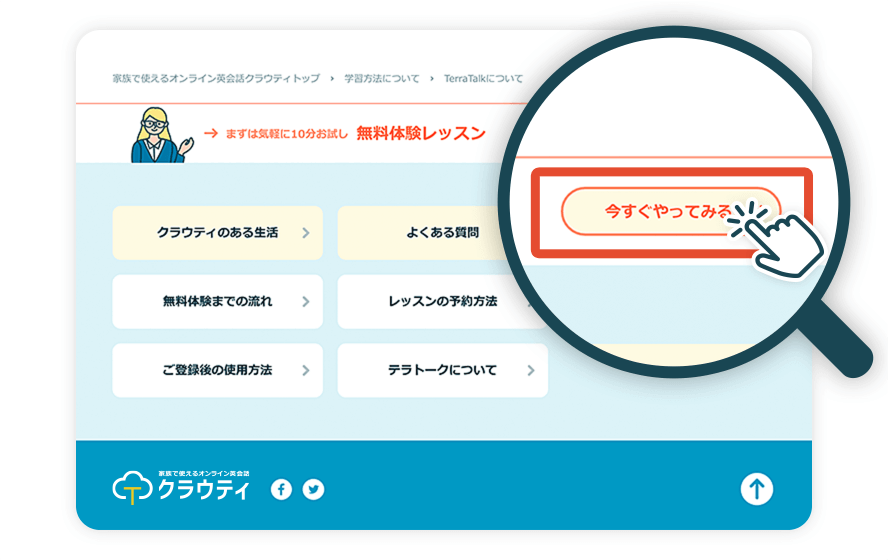 まずは本サイトの「無料体験レッスン」または「今すぐやってみる」をクリックします。