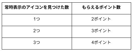 例えば、1つのアカウントで3つのアイコンすべてを申請した場合、本会員様のアカウントに4ポイント付与いたします。