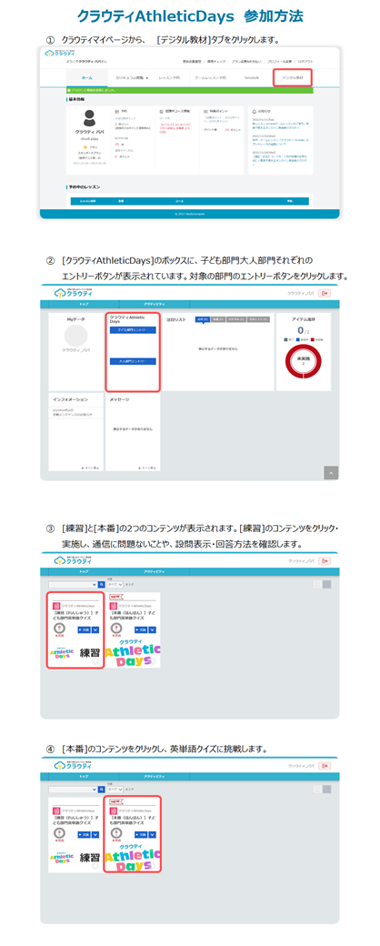 - ②[クラウティAthleticDays]のボックスに、子ども部門大人部門それぞれの