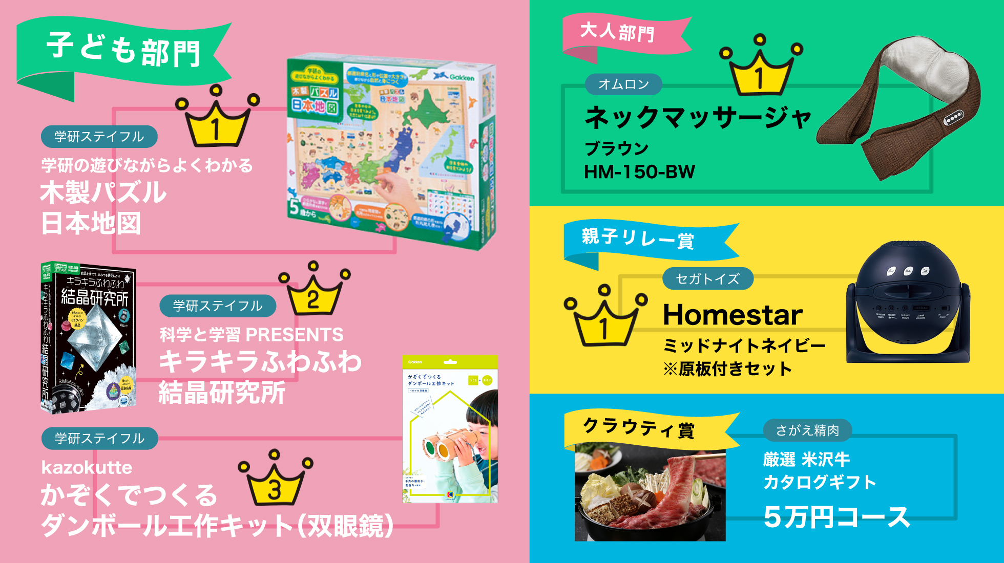 親子合計の得点が最も高いご家族にも景品をご用意しております。