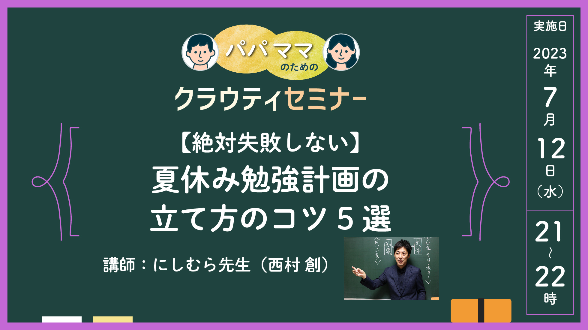 そこで今回は、『【絶対失敗しない】夏休み勉強計画の立て方のコツ 5選』と題し、これらのお悩みを解決するセミナーを開催致します!