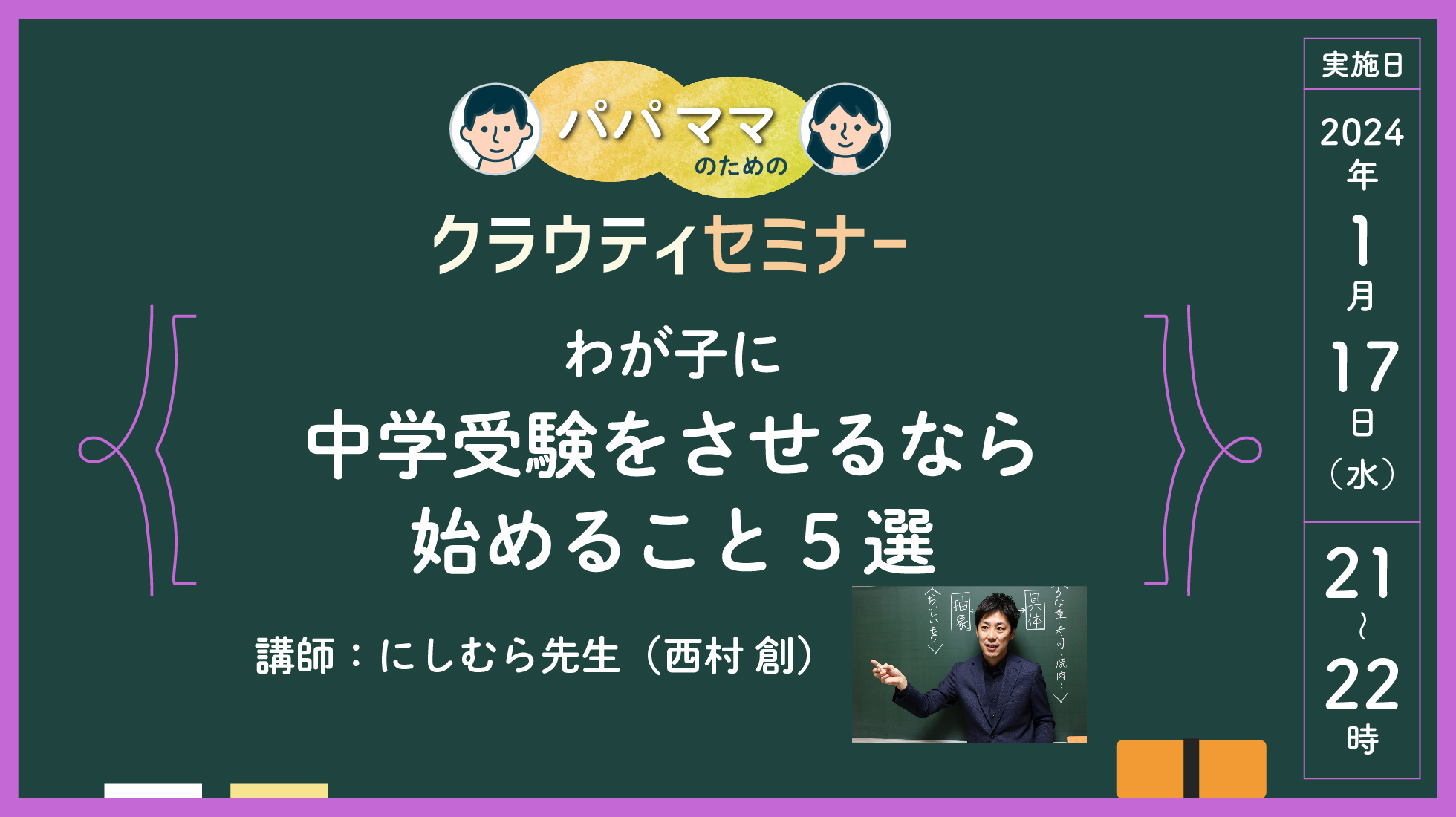登壇者は長く子どもの指導に携わってこられ、現在は受験指導専門家として活動されている、にしむら先生(西村創氏)です!