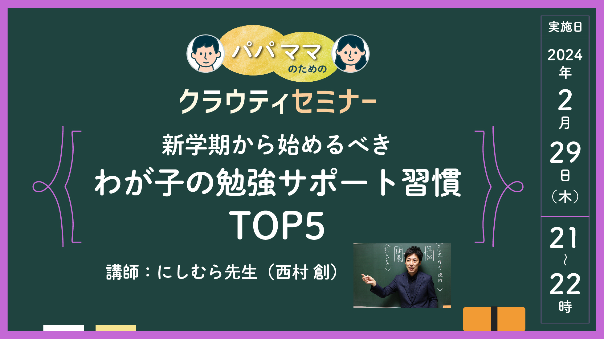 登壇者は長く子どもの指導に携わってこられ、現在は受験指導専門家として活動されている、にしむら先生(西村創氏)です!