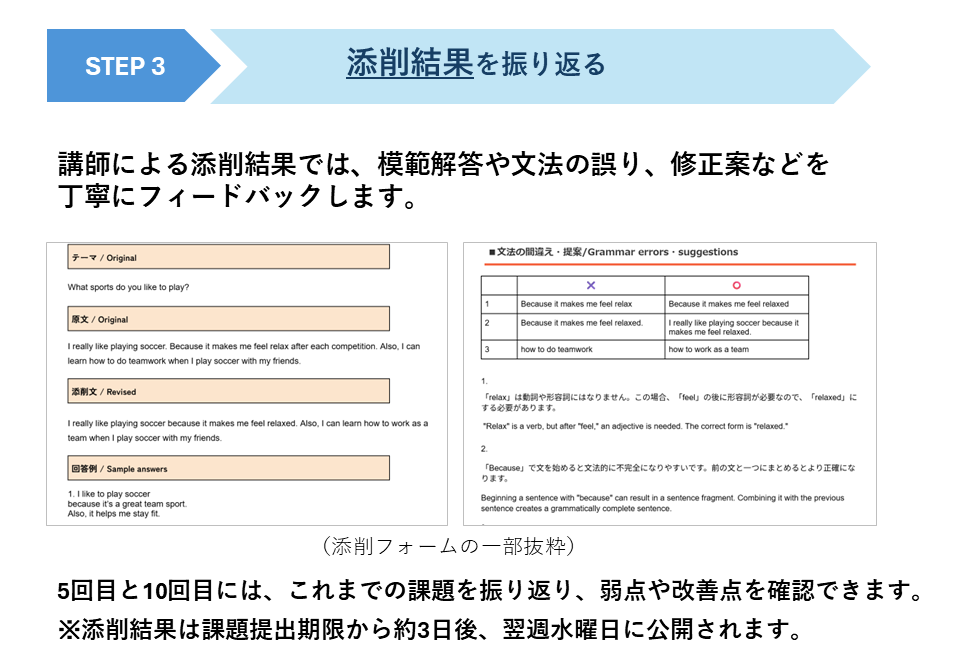 経験豊富な講師による分かりやすい添削と解説(日本語付き)で、理解が深まります。