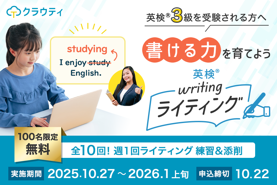 本サービスは、全10回・週1回でライティングの知識を学び、英作文を作成し、講師による添削を受けながら、英検(R)3級ライティングの力をつける内容です。