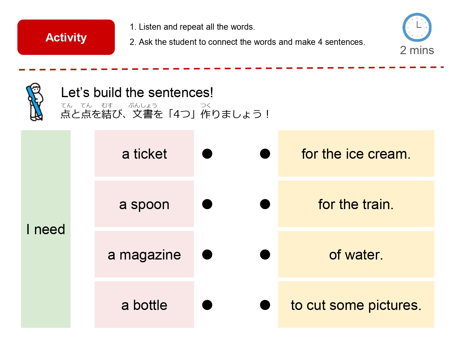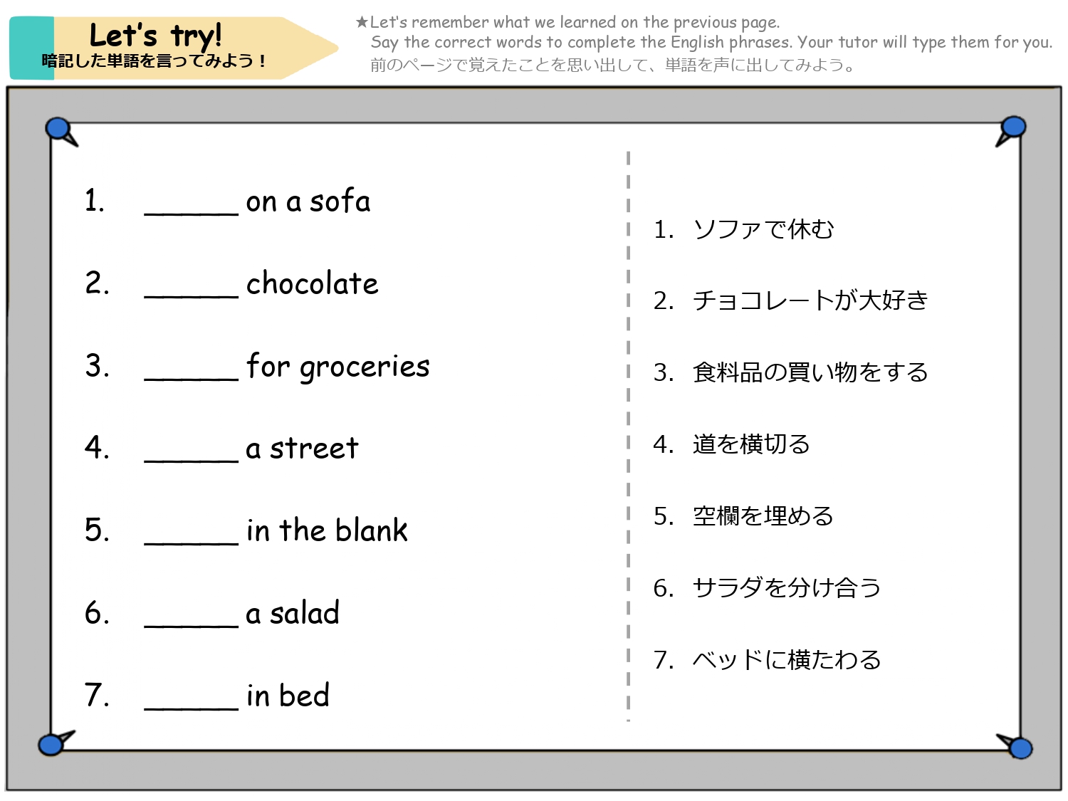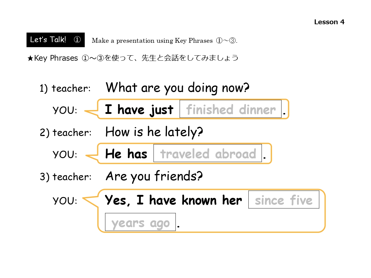 学習したフレーズを活用し、先生とのロールプレイに挑戦しましょう。