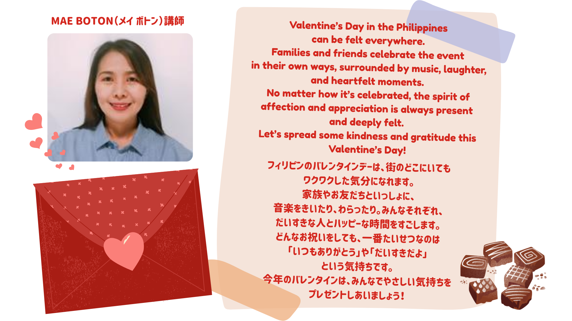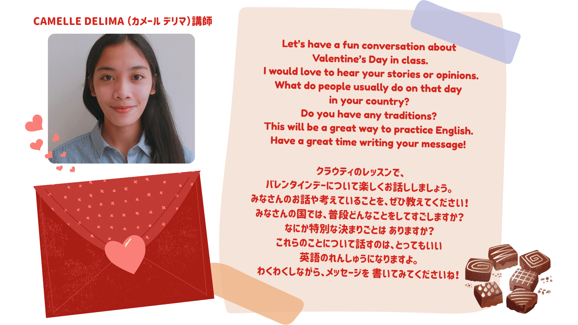 今回は、たくさんいるクラウティ講師の中でも、とくに人気の高い講師に、「バレンタイン」について聞いてみました!