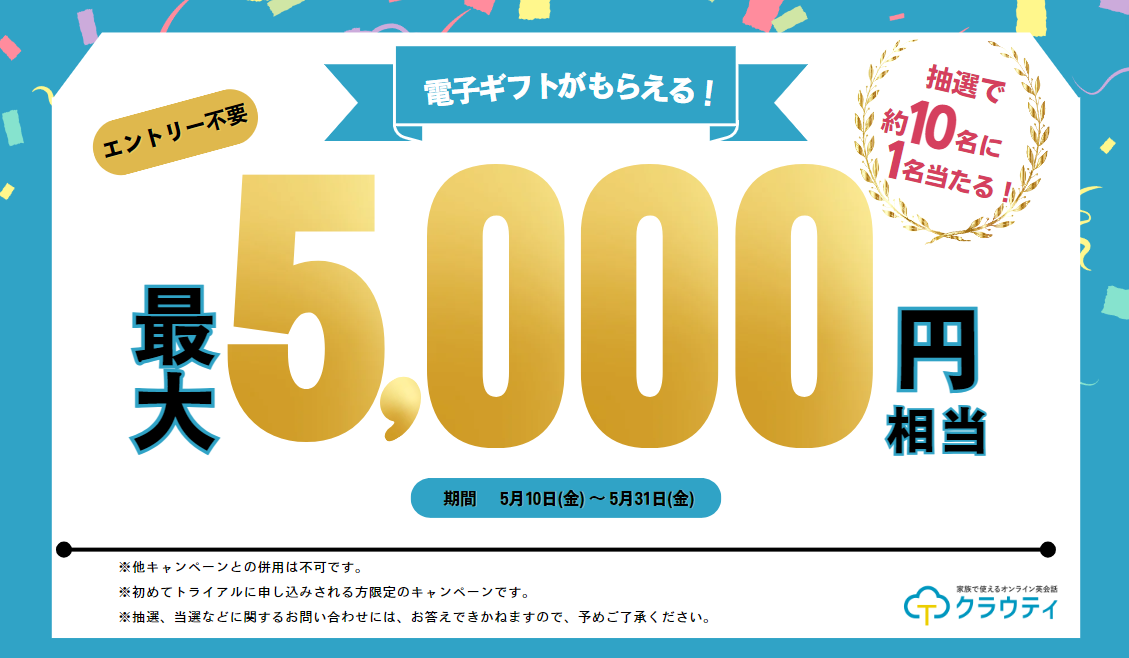 そんな時期に「今年こそ、英語の勉強を始めるぞ!」と、クラウティのトライアルにお申し込みされた方を応援する特別なキャンペーンをご用意しました!