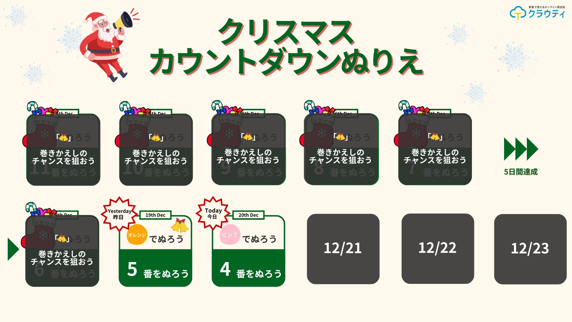 12月20日(金) クリスマス・カウントダウンぬりえ