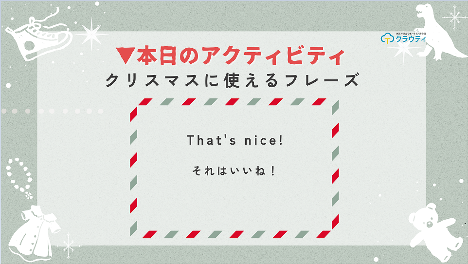 昨日のアクティビティは『クリスマスに使えるフレーズ』♪