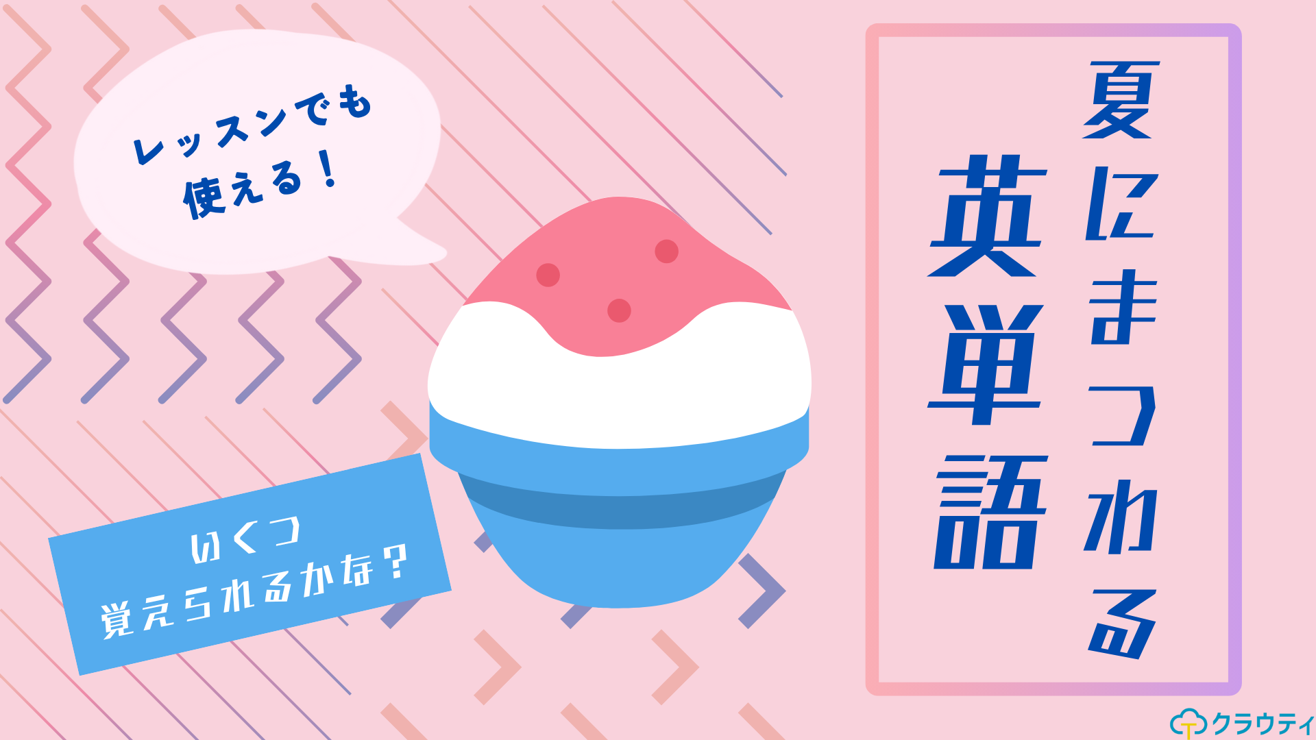 2025.07.05 キャンペーン 夏にまつわる英単語を紹介! 「ひまわり」って英語でなんていうの? 「すいか」や「うきわ」は? 夏にピッタリのことばをご紹介します! 覚えたらレッスンでもぜひ使ってみてくださいね! ▶英単語のページはこちら! ▶イベント詳細はこちら 📚*イベントの申請はこちらから♪*📚