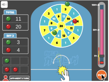 おはじきを弾いて的の中を狙いおはじきが止まった場所で得点を競うゲームです。
