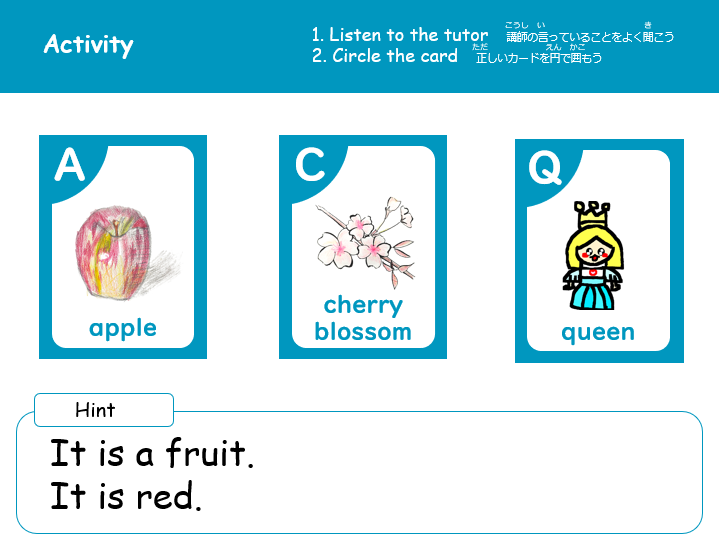 かるたを通して、単語だけでなくその単語を説明するための短い文章の学習もできる教材です。