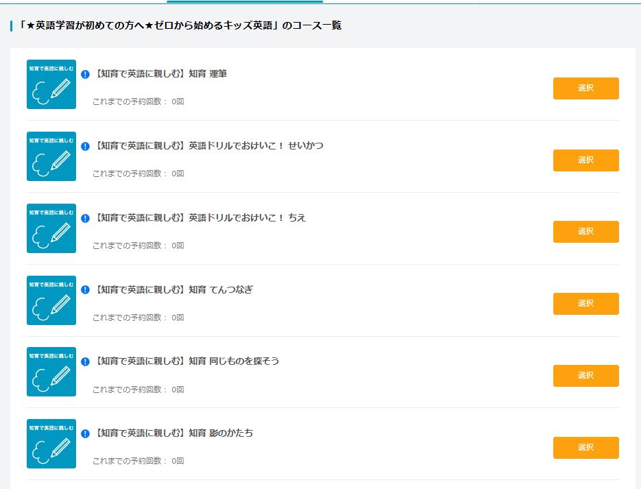 ホーム画面に自動的に戻り、レッスン一覧に選択いただいたコースが表示されますので、受講をご希望のレッスンを「予約」ボタンをクリックしてください。