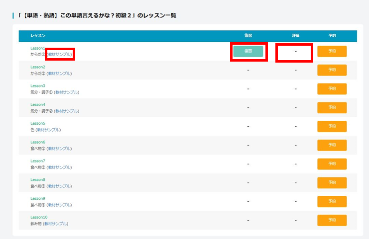 「サンプル」:レッスンマテリアルの一部をご確認いただけます。