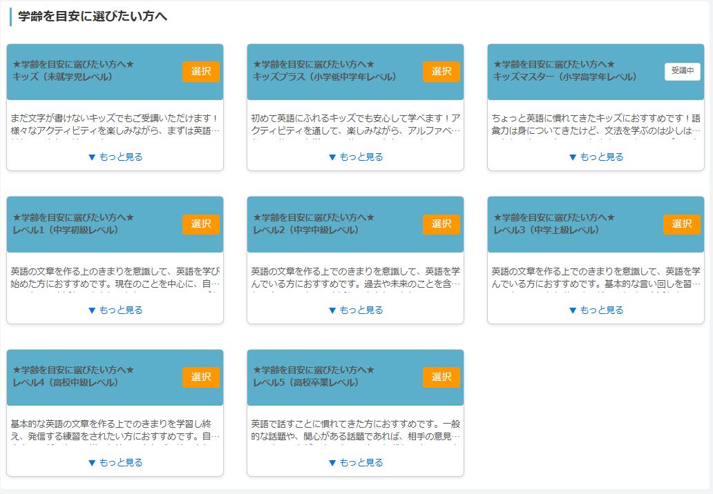 レベルを基準に選択する場合:★学齢を目安に選びたい方へ★がついているカリキュラムを「選択」してください。