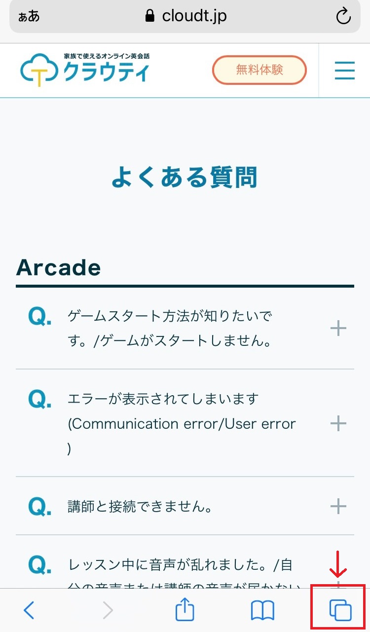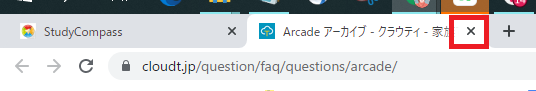 「よくある質問」タブを閉じる方法:「×」マークをクリックする